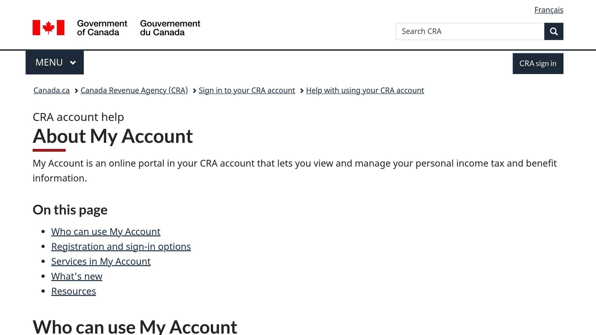 Step 2: Set Up or Access CRA My Account