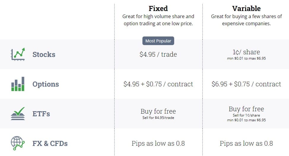 </figcaption> </figure>Active traders can also choose between a fixed and variable plan depending on trading volume and investor goals.